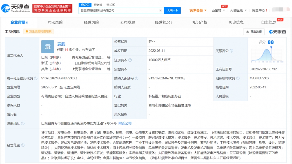 关键词: 海尔集团 日日顺新能源科技公司 注册资本 新兴能源技术研发